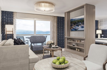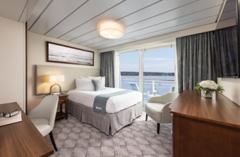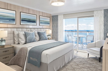 Throughout the ship, a soft color palette enhances the relaxed onboard atmosphere. Accommodations include spacious staterooms, singles, and suites, all with private balconies, offering guests the perfect vantage point to experience the coastal charm and natural beauty of the passing scenery.