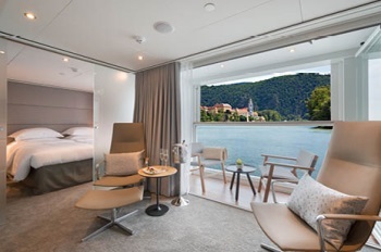 We’ve put every effort into designing beautiful staterooms and suites, selecting the most elegant décor and furnishings to create a haven for you to relax in as you sail through the most picturesque landscapes. But with our Emerald Panorama Balcony Suite, we’ve gone one step further and created a completely new type of cabin that’s unique to European river cruising. These spectacular suites boast our revolutionary indoor balcony design, complete with decking area, table and chairs – generating an entirely new space for you to enjoy the landscapes you pass. With the touch of a button, the upper part of the cabin’s floor-to-ceiling window drops down to unveil uninterrupted views of the stunning scenery, opening up the cabin and bringing the outdoors in. 170 sqft.