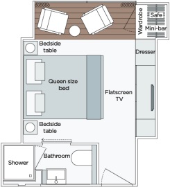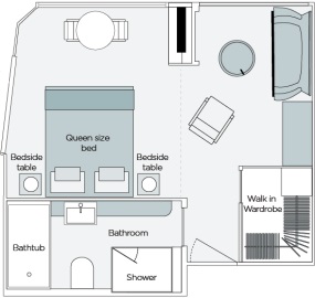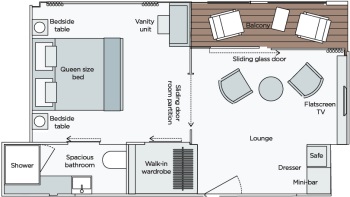 These suites boast their very own bedroom which closes off from the rest of the cabin, a separate lounge area and a fantastic outdoor balcony complete with open-air system, allowing you to enjoy the views of your surroundings whatever the weather.