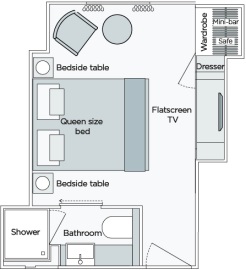In our Emerald Panorama Balcony Suites, you’ll also find a mini-fridge – perfect for storing any gifts that need keeping cool, such as chocolates, confectionery, or special local drinks. You can use your mini-fridge to keep your complimentary bottled water cool, too. 160-188 sq. ft.