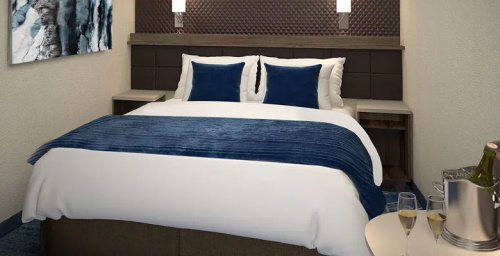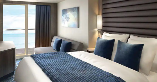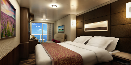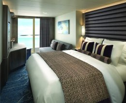Perfect for families. Includes two lower beds that convert to a queen-size bed and additional bedding for up to 2 guests, plus a balcony to enjoy the sparkling waters and beautiful vistas. (Stateroom: 214-235 sq. ft. Balcony: 38-59 sq. ft.)
