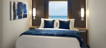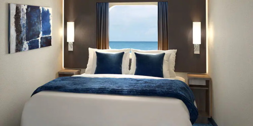 These staterooms feature a large round window and a queen-size bed. Staterooms are priced exclusively for solo travelers and include access to the private Studio Lounge. (160-245 sq. ft.)