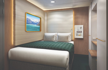 These staterooms include a queen-size bed and the same amenities as other inside staterooms. Staterooms are priced exclusively for solo travelers and include access to the private Studio Lounge. (135 sq. ft.)
